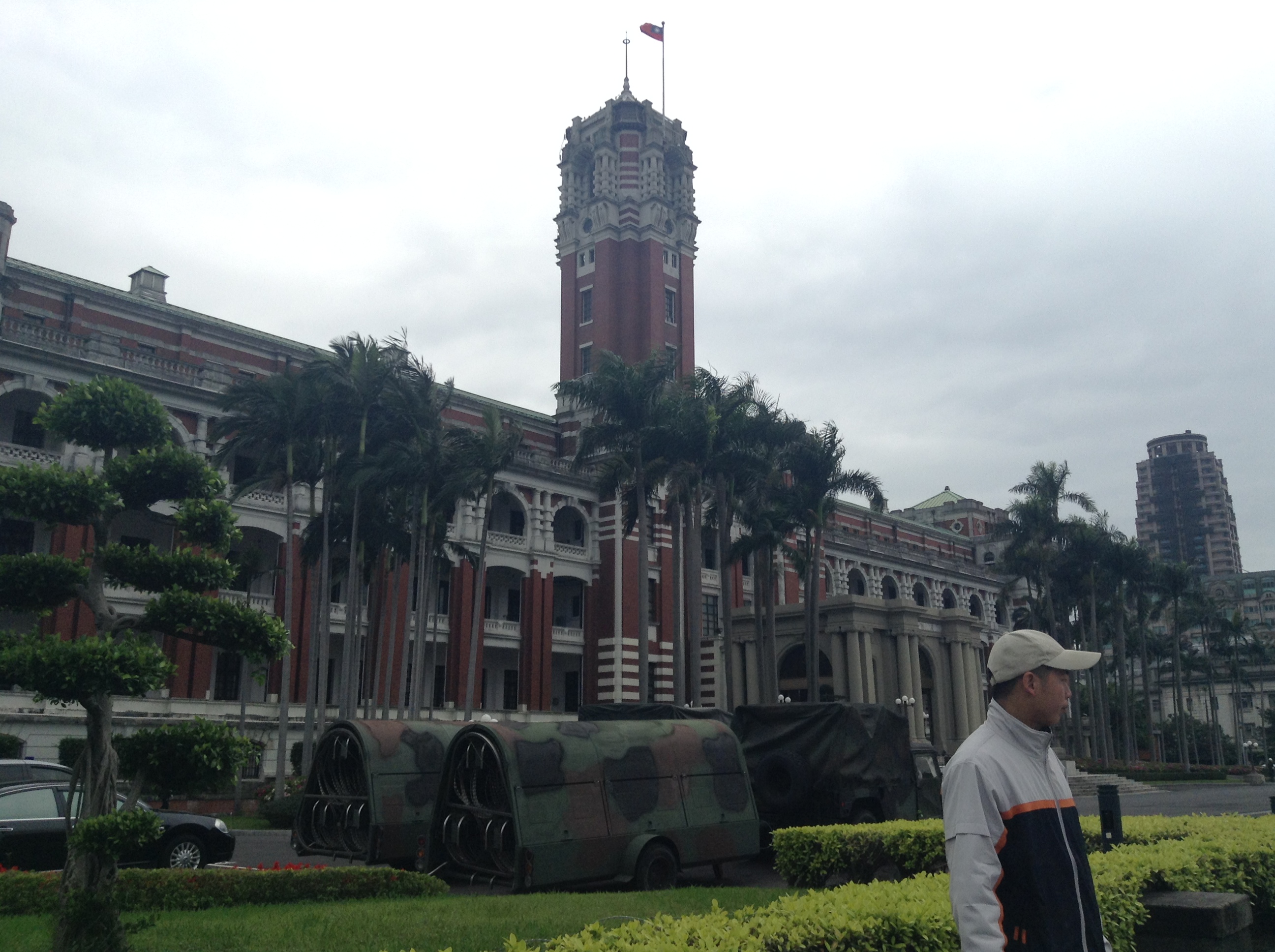 ST3日目の今日、午前中は総統府見学を予定していましたが、現在立法院周辺で起こっている学生運動の影響で見学ができませんでした。台湾の霞ヶ関にあたる総統府周辺は、警察や軍による警備が厳重体制になっていて、時々立ち止まりながらカメラやビデオを撮っているだけでマークされてしまいました。運動の主体が学生ということもあり、若者は特に注意されているようです。