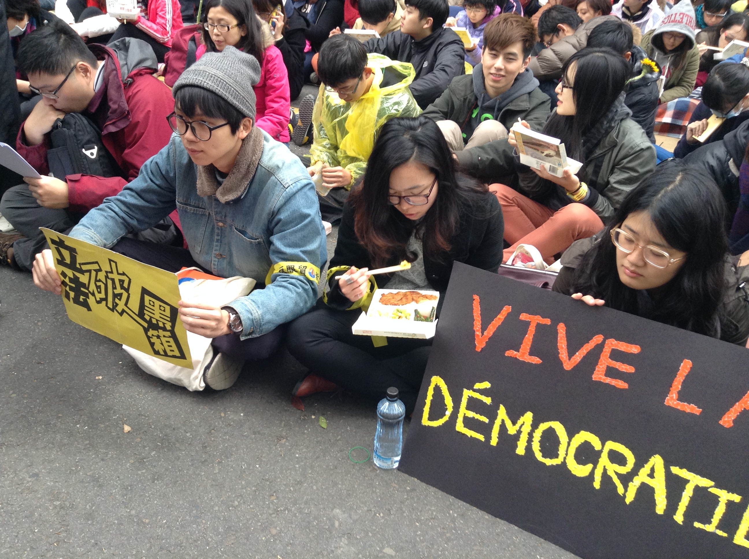 午後は、デモについて生の声を聞きたいということで、立法院周辺を散歩しました。デモと聞くと乱雑で暴力的なものを想像することも多いと思うのですが、こちらのデモは秩序立っていて、驚きました。道で見かけた学生の方にインタビューをして、台湾の学生らの意識の高さを感じたと同時に、どうか変わってほしいという彼らの思いが伝わってきました。